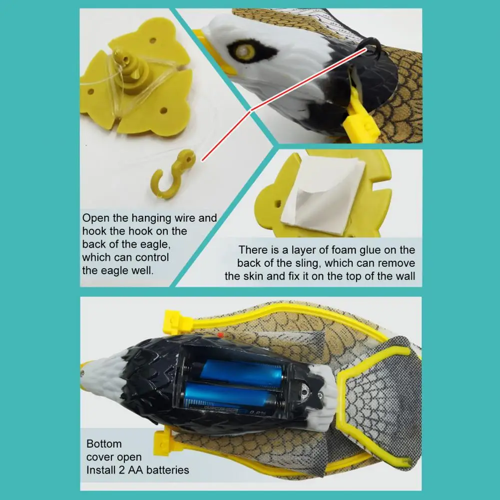 Fácil configuração e operação: basta prender o fio pendurado ao teto, prender o fio na parte de trás do brinquedo águia do gato e inserir a bateria. A águia vai espalhar as asas e voar em círculos ao longo da corda, proporcionando entretenimento interativo fácil de configurar e desfrutar.